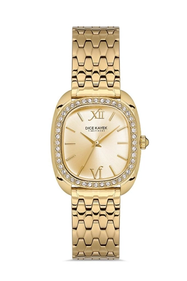 Dice Kayek DK.1.AG1380.08 Taşlı Tasarım Çelik Kordon Çelik Kasa 5 ATM Suya Dayanıklı Altın Renk Kadın Kol Saati