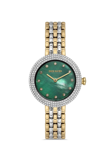 Dice Kayek DK.1.AG1397.04 Taşlı Tasarım Çelik Kasa Çelik Kordon Metalik-Altın Renk Kadın Kol Saati