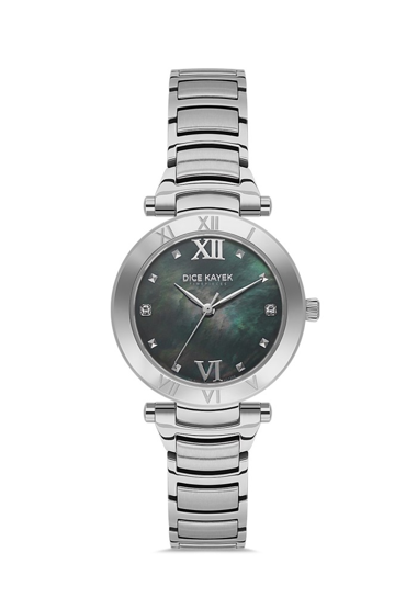 Dice Kayek DK.1.AG1399.02 Taşlı Tasarım Çelik Kordon Çelik Kasa 5 ATM Suya Dayanıklı Metalik Renk Kadın Kol Saati