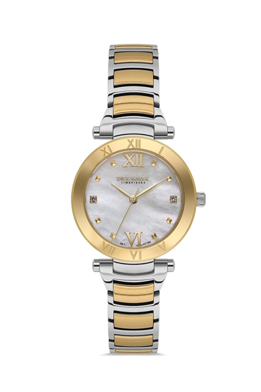 Dice Kayek DK.1.AG1399.03 Taşlı Tasarım Sedef Kadranlı Çelik Kordon Çelik Kasa 5 ATM Suya Dayanıklı Metalik-Altın Renk Kadın Kol Saati