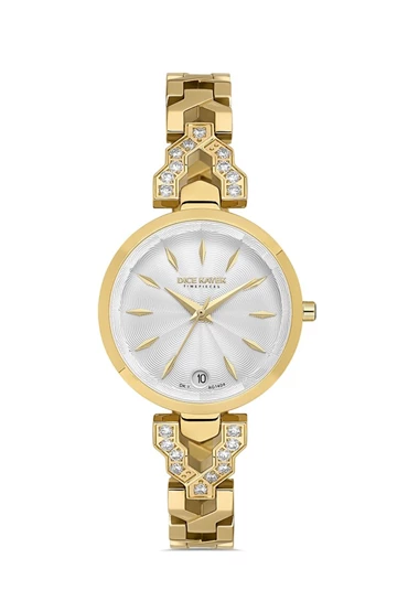 Dice Kayek DK.1.AG1404.03 Taşlı Tasarım Çelik Kordon Çelik Kasa 3 ATM Suya Dayanıklı Altın Renk Kadın Kol Saati