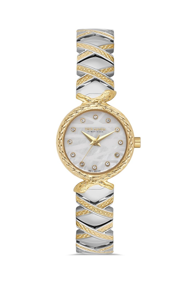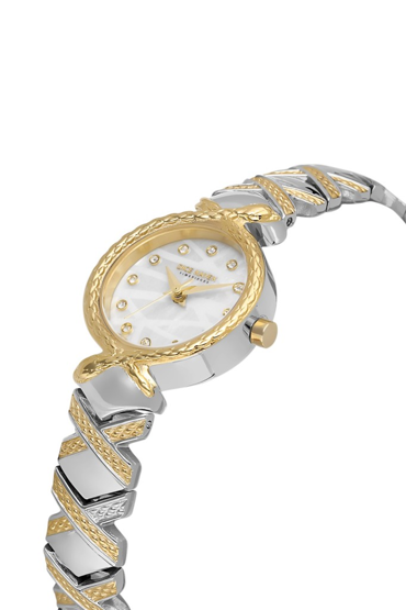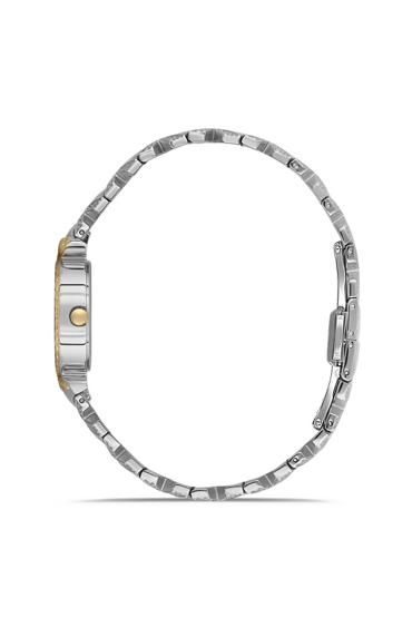 Dice Kayek DK.1.AG1408.03 Taşlı Tasarım Çelik Kordon Çelik Kasa 5 ATM Suya Dayanıklı Metalik-Altın Renk Kadın Kol Saati