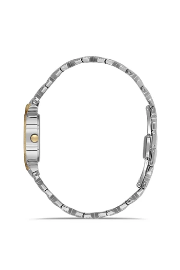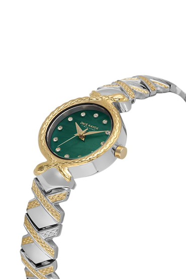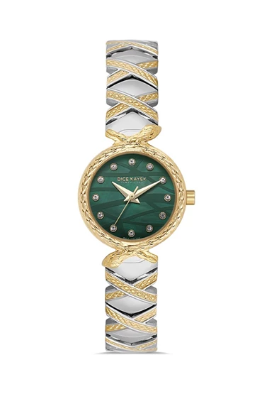 Dice Kayek DK.1.AG1408.04 Taşlı Tasarım Çelik Kordon Çelik Kasa 5 ATM Suya Dayanıklı Metalik-Altın Renk Kadın Kol Saati