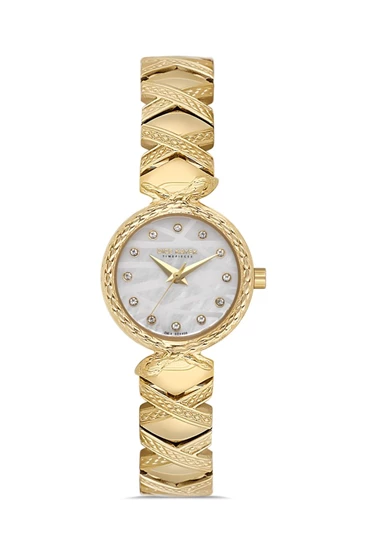 Dice Kayek DK.1.AG1408.05 Taşlı Tasarım Çelik Kordon Çelik Kasa 5 ATM Suya Dayanıklı Altın Renk Kadın Kol Saati