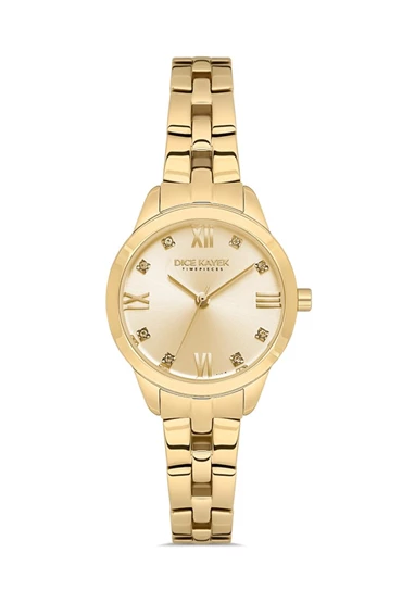 Dice Kayek DK.1.AG1410.08 Taşlı Tasarım Çelik Kordon Çelik Kasa 5 ATM Suya Dayanıklı Altın Renk Kadın Kol Saati