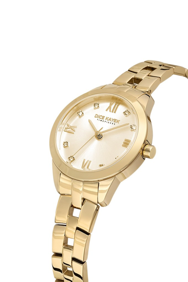 Dice Kayek DK.1.AG1410.08 Taşlı Tasarım Çelik Kordon Çelik Kasa 5 ATM Suya Dayanıklı Altın Renk Kadın Kol Saati