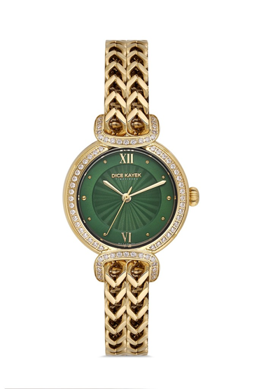 Dice Kayek DK.1.AG1411.06 Taşlı Tasarım Çelik Kordon Çelik Kasa 5 ATM Suya Dayanıklı Altın Renk Kadın Kol Saati