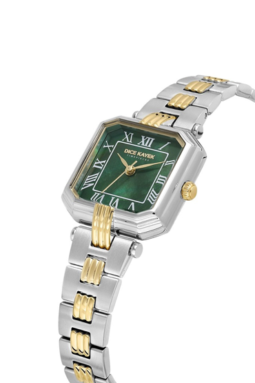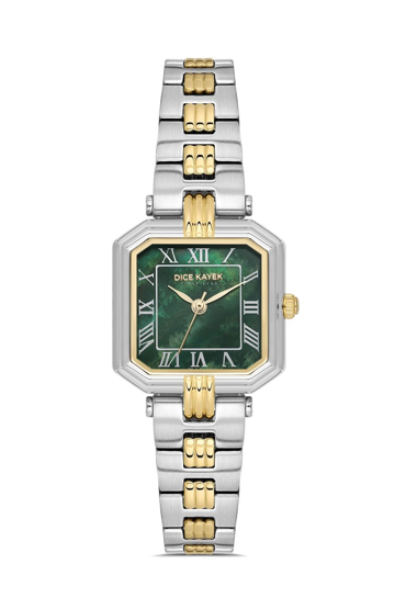Dice Kayek DK.1.AG1412.05 Kare Kadran Çelik Kordon Çelik Kasa 3 ATM Suya Dayanıklı Metalik-Altın Renk Kadın Kol Saati Çok Renkli