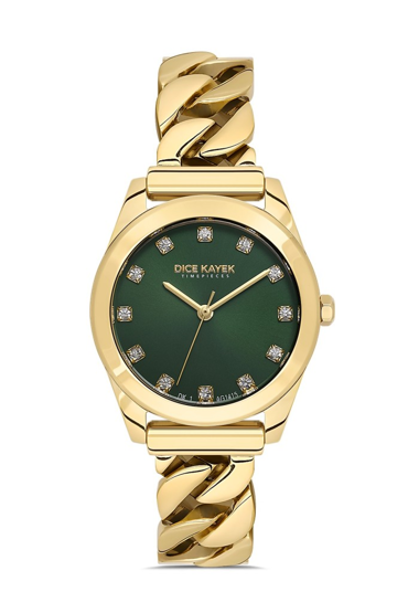 Dice Kayek DK.1.AG1415.06 Taşlı Tasarım Çelik Kordon Çelik Kasa 5 ATM Suya Dayanıklı Altın Renk Kadın Kol Saati