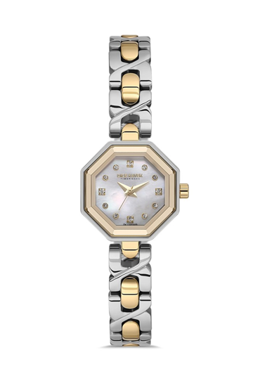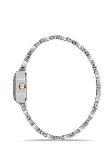 Dice Kayek DK.1.AG1420.04 Taşlı Tasarım Çelik Kordon Çelik Kasa 5 ATM Suya Dayanıklı Metalik-Altın Renk Kadın Kol Saati