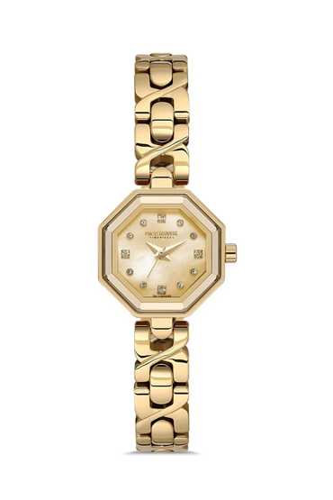 Dice Kayek DK.1.AG1420.06 Taşlı Tasarım Çelik Kordon Çelik Kasa 5 ATM Suya Dayanıklı Altın Renk Kadın Kol Saati