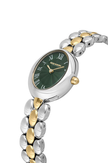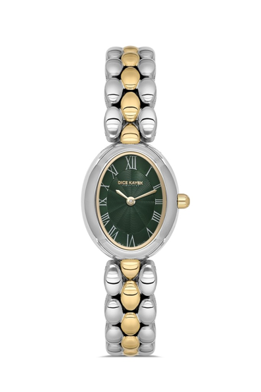 Dice Kayek DK.1.AG1422.03 Romen Rakamlı Oval Kadranlı Çelik Kordon Çelik Kasa 3 ATM Suya Dayanıklı Metalik-Altın Renk Kadın Kol Saati Çok Renkli