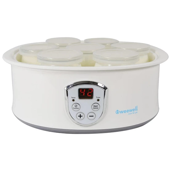 Weewell WYM400 Dijital Yoğurt Yapma Makinası, dijital zaman ayarlama fonksiyonu (0-48 saat), otomatik kapanım ve sesli uyarı özellikleri ile kullanım kolaylığı sağlar. Otomatik sıcaklık kontrolü ve düşük enerji ile çalışan sistem mevcuttur. BPA içermez. Şık ve ergonomik tasarımlıdır. 7 adet şeffaf kapaklı ve buzdolabında saklanabilir cam yoğurt kavanozu bulunur.