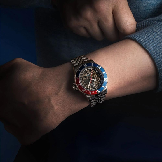 Kasa Çapı: 40 mm - Kasa Şekli: Yuvarlak - Kasa Materyali: Çelik - Kasa Rengi: Metalik Gri - Kordon Materyali: Çelik - Kordon Rengi: Metalik Gri- Kadran Rengi: Siyah - Kadran Işığı: Yok - Taş: Yok - Çalışma Şekli: Analog - Teknolojisi: Otomatik - Takvim: Yok - Kronometre: Yok - Alarm: Yok - Cam Özelliği: Safir - Özellik: Kasa Kalınlığı: 13 mm - LUG TO LUG: 46,5 mm - Kordon Genişliği: 20 mm - Ağırlık: 200 Gr - Su Geçirmezlik: 10 ATM - Garanti Süresi: 2 YIL - Cinsiyet: Erkek
