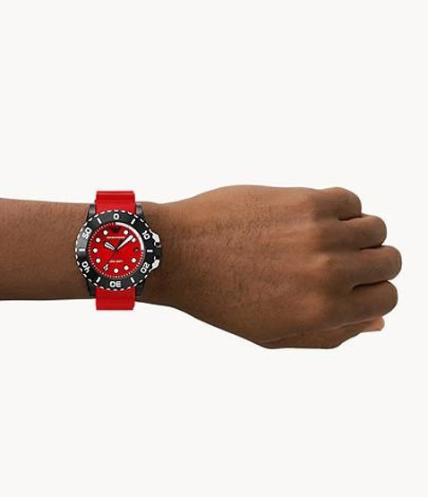 Kasa Çapı: 46 - Kasa Şekli: Yuvarlak - Kasa Materyali: Çelik - Kasa Rengi: Siyah - Kordon Materyali: Slikon - Kordon Rengi: Kırmızı- Kadran Rengi: Kırmızı - Kadran Işığı: Yok - Taş: Yok - Çalışma Şekli: Analog - Teknolojisi: Quartz - Takvim: Var - Kronometre: Yok - Alarm: Yok - Cam Özelliği: Mineral - Özellik: - Su Geçirmezlik: 20 ATM - Garanti Süresi: 2 YIL - Cinsiyet: Erkek