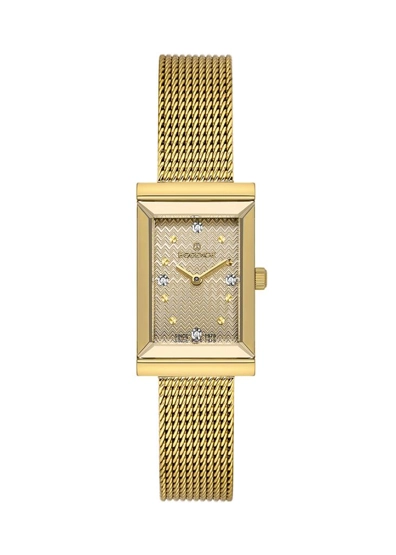 Essence D1213.110 Taşlı Tasarım Hasır/Çelik Kordon Dikdörtgen Kadran Çelik Kasa 5 ATM Suya Dayanıklı Altın Renk Kadın Kol Saati Altın