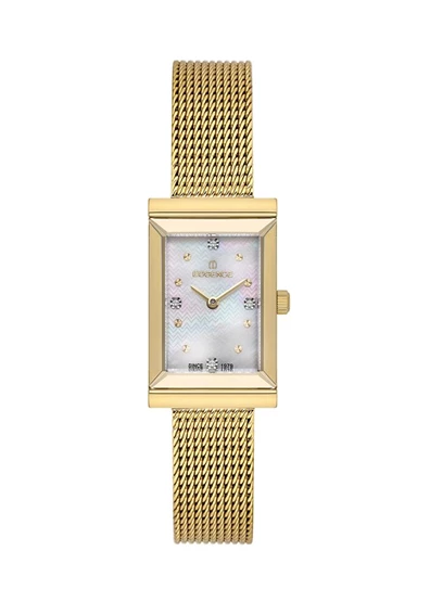 Essence D1213.120 Taşlı Tasarım Hasır/Çelik Kordon Dikdörtgen Kadran Çelik Kasa 5 ATM Suya Dayanıklı Altın Renk Kadın Kol Saati Altın