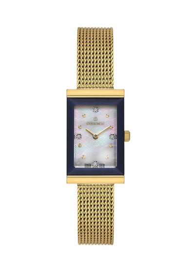 Essence D1213.129 Taşlı Tasarım Hasır/Çelik Kordon Dikdörtgen Kadran Çelik Kasa 5 ATM Suya Dayanıklı Altın Renk Kadın Kol Saati Altın