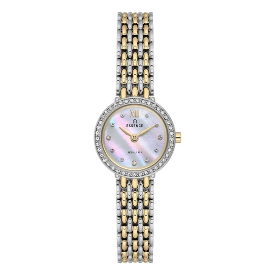 Essence D1237.220 Minimal Taşlı Tasarım Çelik Kordon Çelik Kasa 3 ATM Suya Dayanıklı Metalik-Altın Renk Kadın Kol Saati Çok Renkli