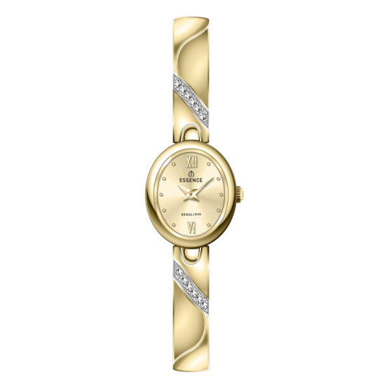 Essence D1240.110 Minimal Taşlı Tasarım Oval Kadran Metal Kordon Metal Kasa 3 ATM Suya Dayanıklı Altın Renk Kadın Kol Saati