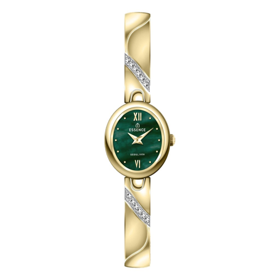 Essence D1240.170 Minimal Taşlı Tasarım Oval Kadran Metal Kordon Metal Kasa 3 ATM Suya Dayanıklı Altın Renk Kadın Kol Saati