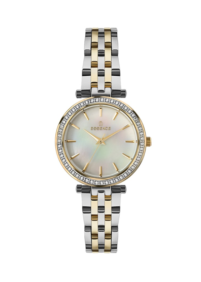 Essence ES6640FE.220 Taşlı Tasarım Sedefli Kadran Çelik Kordon Çelik Kasa 5 ATM Suya Dayanıklı Metalik-Altın Renk Kadın Kol Saati Çok Renkli