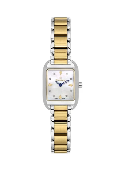 Essence ES6918FE.220 Taşlı Tasarım Dikdörtgen Kadran Çelik Kordon Çelik Kasa 5 ATM Suya Dayanıklı Metalik-Altın Renk Kadın Kol Saati Çok Renkli