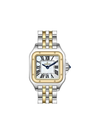 Essence ES6926FE.220 Sedefli Kare Kadran Çelik Kordon Çelik Kasa 5 ATM Suya Dayanıklı Metalik-Altın Renk Kadın Kol Saati Çok Renkli
