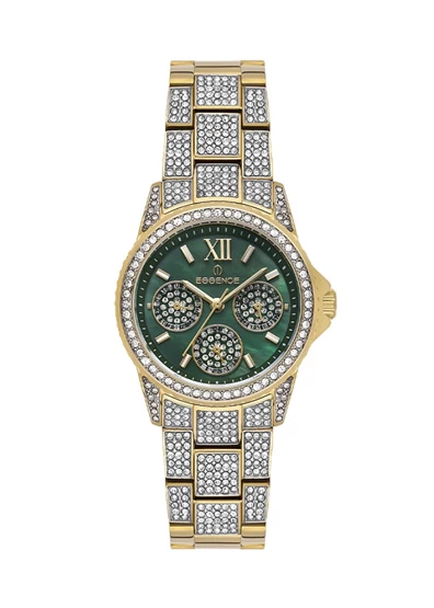 Essence ES6932FE.170 Taşlı Tasarım Çelik Kordon Çelik Kasa 5 ATM Suya Dayanıklı Altın Renk Kadın Kol Saati Çok Renkli