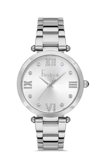 Freelook FL.1.10315.1 Taşlı Tasarım 5 ATM Suya Dayanıklı Çelik Kordon Metalik Renk Kadın Kol Saati