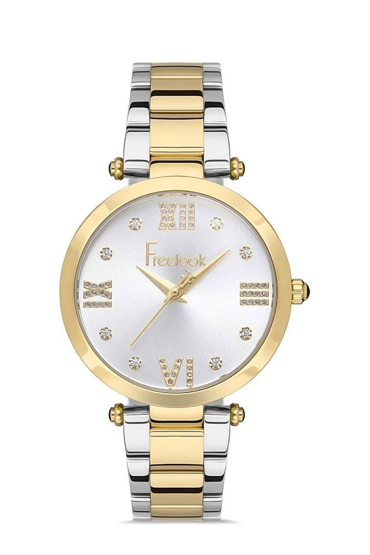 Freelook FL.1.10315.5 Taşlı Tasarım 5 ATM Suya Dayanıklı Çelik Kordon Gümüş-Altın Kadın Kol Saati