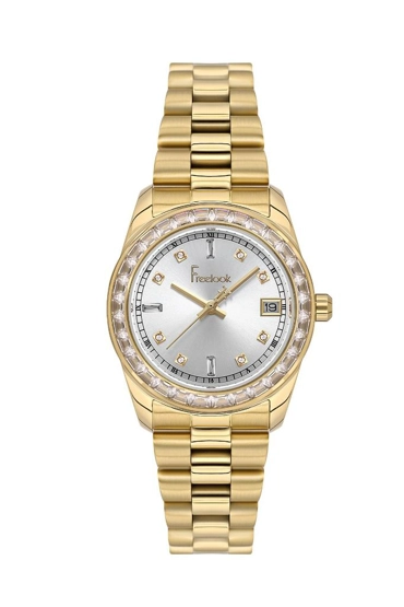 Freelook FL.1.10454-2 Çelik Kasa Çelik Kordon Taşlı Tasarım Altın Renk Kadın Kol Saati