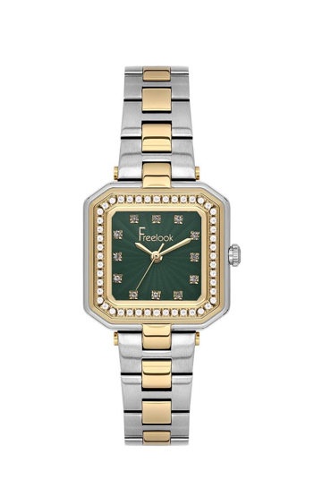 Freelook FL.1.10478-5 Taşlı Tasarım 5 ATM Suya Dayanıklı Çelik Kordon Gümüş-Altın Kadın Kol Saati Çok Renkli