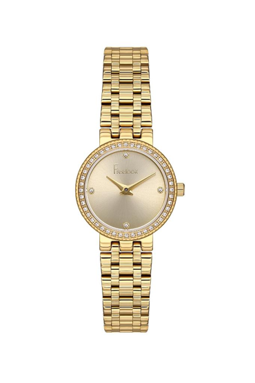 Freelook FL.1.10482-3 Taşlı Tasarım 5 ATM Suya Dayanıklı Çelik Kordon Altın Renk Kadın Kol Saati