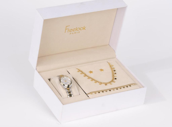 Freelook FL.1.10488-3 Kolye Bileklik ve Küpe Hediyeli 5 ATM Suya Dayanıklı Çelik Kordon Gümüş-Altın Kadın Kol Saati