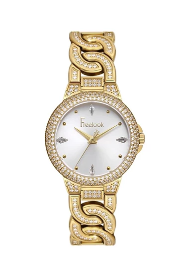 Freelook FL.1.10507-2 Taşlı Tasarım 5 ATM Suya Dayanıklı Çelik Kasa Çelik Kordon Altın Renk Kadın Kol Saati