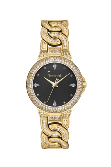 Freelook FL.1.10507-4 Taşlı Tasarım 5 ATM Suya Dayanıklı Çelik Kasa Çelik Kordon Altın Renk Kadın Kol Saati