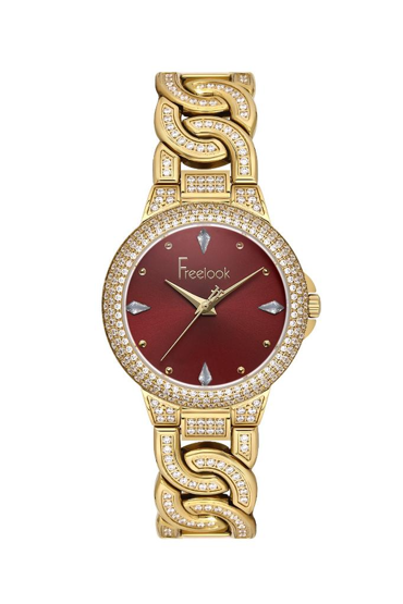 Freelook FL.1.10507-5 Taşlı Tasarım 5 ATM Suya Dayanıklı Çelik Kasa Çelik Kordon Altın Renk Kadın Kol Saati