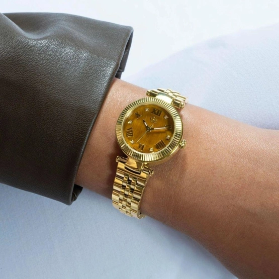 Kasa Çapı: 28 mm - Kasa Şekli: Yuvarlak - Kasa Materyali: Çelik - Kasa Rengi: Altın - Kordon Materyali: Çelik - Kordon Rengi: Altın- Kadran Rengi: Kahverengi - Kadran Işığı: Yok - Taş: Var - Çalışma Şekli: Analog - Teknolojisi: Quartz - Takvim: Yok - Kronometre: Yok - Alarm: Yok - Cam Özelliği: Safir - Özellik: - Su Geçirmezlik: 5 ATM - Garanti Süresi: 2 YIL - Cinsiyet: Kadın