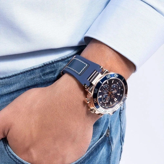Kasa Çapı: 44 mm - Kasa Şekli: Yuvarlak - Kasa Materyali: Çelik - Kasa Rengi: Rose Gold - Kordon Materyali: Silikon - Kordon Rengi: Mavi- Kadran Rengi: Mavi - Kadran Işığı: Yok - Taş: Yok - Çalışma Şekli: Analog - Teknolojisi: Quartz - Takvim: Var - Kronometre: Yok - Alarm: Yok - Cam Özelliği: Safir - Özellik: - Su Geçirmezlik: 10 ATM - Garanti Süresi: 2 YIL - Cinsiyet: Erkek