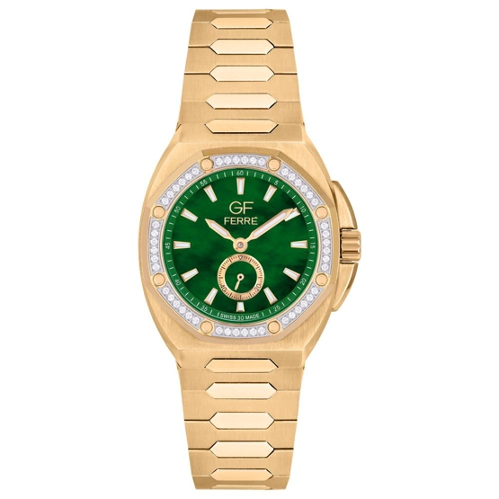 Kasa Çapı: 30 mm - Kasa Şekli: Yuvarlak - Kasa Materyali: Çelik - Kasa Rengi: Altın - Kordon Materyali: Çelik - Kordon Rengi: Altın- Kadran Rengi: Yeşil - Kadran Işığı: Yok - Taş: Var - Çalışma Şekli: Analog - Teknolojisi: Quartz - Takvim: Var - Kronometre: Yok - Alarm: Yok - Cam Özelliği: Safir - Özellik: - Su Geçirmezlik: 5 ATM - Garanti Süresi: 2 Yıl - Cinsiyet: Kadın