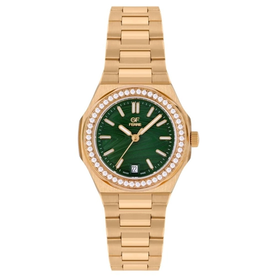Kasa Çapı: 28 mm - Kasa Şekli: Yuvarlak - Kasa Materyali: Çelik - Kasa Rengi: Altın - Kordon Materyali: Çelik - Kordon Rengi: Altın- Kadran Rengi: Yeşil - Kadran Işığı: Yok - Taş: var - Çalışma Şekli: Analog - Teknolojisi: Quartz - Takvim: Var - Kronometre: Yok - Alarm: Yok - Cam Özelliği: Safir - Özellik: - Su Geçirmezlik: 5 ATM - Garanti Süresi: 2 Yıl - Cinsiyet: Kadın