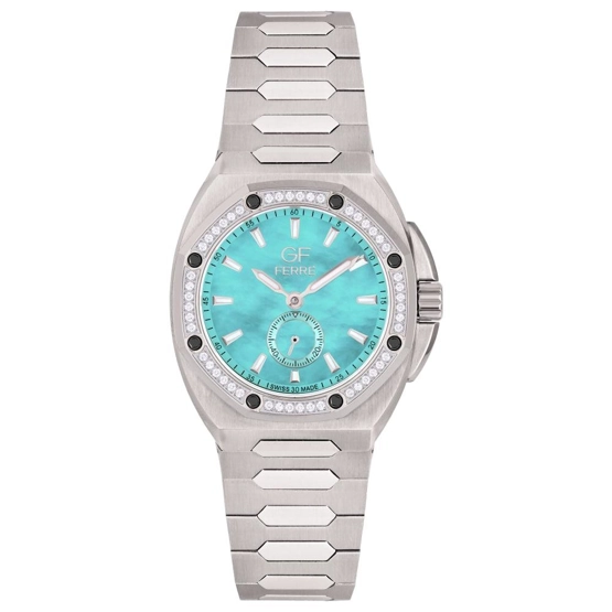 Kasa Çapı: 30 mm - Kasa Şekli: Yuvarlak - Kasa Materyali: Çelik - Kasa Rengi: Metalik Gri - Kordon Materyali: Çelik - Kordon Rengi: Metalik Gri- Kadran Rengi: Turkuaz - Kadran Işığı: Yok - Taş: Var - Çalışma Şekli: Analog - Teknolojisi: Quartz - Takvim: Var - Kronometre: Yok - Alarm: Yok - Cam Özelliği: Safir - Özellik: - Su Geçirmezlik: 5 ATM - Garanti Süresi: 2 Yıl - Cinsiyet: Kadın