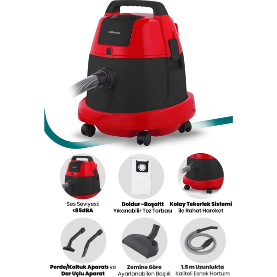 Goldmaster BY-4595 Tozkoparan 2200W Islak/kuru Toz Torbalı Süpürge Kırmızı