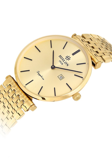 Hislon CL119G-08SG Takvimli Safir Çizilmez Cam Altın Renk Erkek Kol Saati