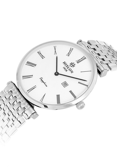 Hislon CL119S-03SS Safir Çizilmez Cam Takvimli 3 Atm Suya Dayanıklı Metalik Renk Erkek Kol Saati