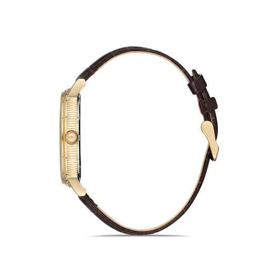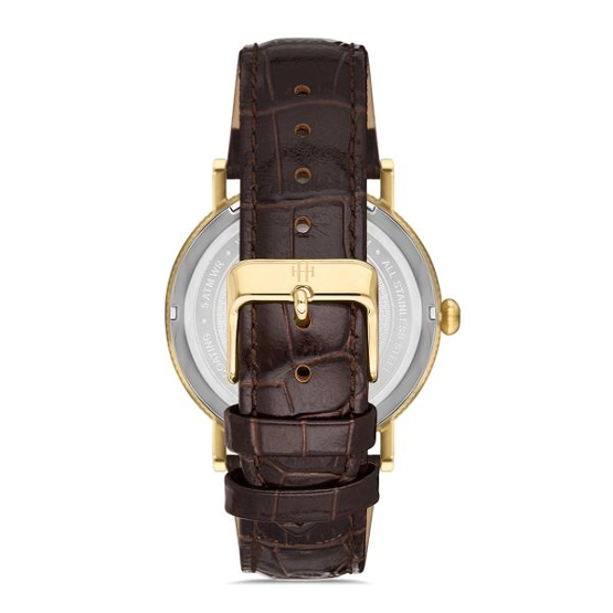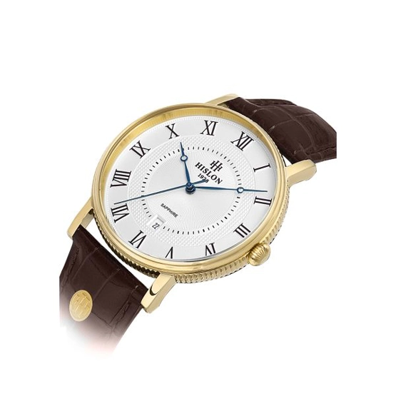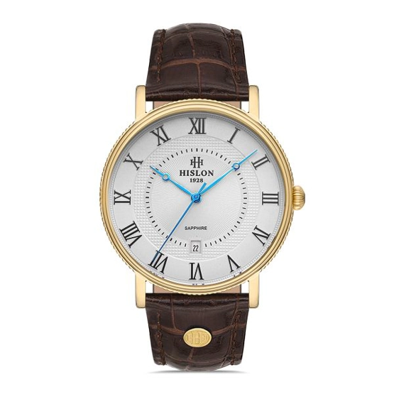 Hislon CL121G-03KG Deri Kordonlu Çizilmez Safir Camlı Su Geçirmez Takvimli Kahverengi Erkek Kol Saati
