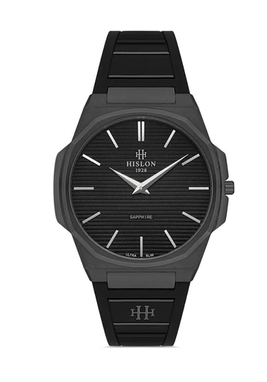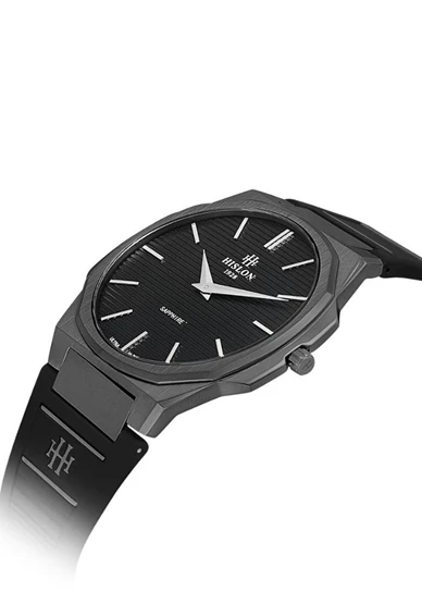 Hislon CL127N-04BS Safir Camlı Silikon Kordon Çelik Kasa 3 ATM Suya Dayanıklı Siyah Renk Erkek Kol Saati