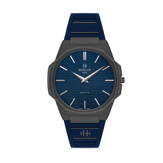 Hislon CL127N-11MN Safir Camlı Silikon Kordon Çelik Kasa 3 ATM Suya Dayanıklı Lacivert Renk Erkek Kol Saati