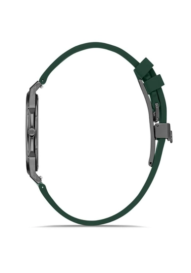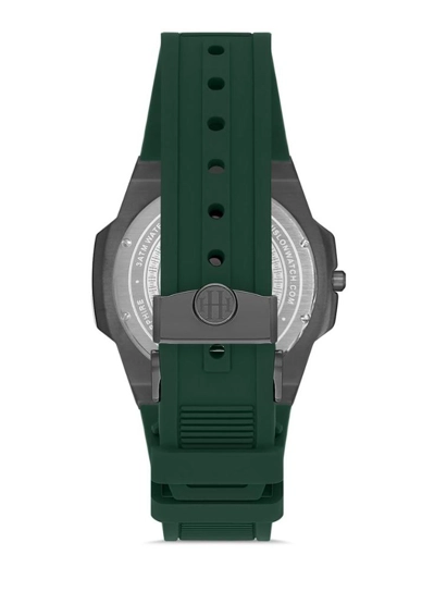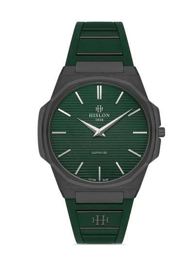 Hislon CL127N-15YN Safir Çizilmez Cam İnce Tasarım Silikon Kordon Yeşil Renk Erkek Kol Saati
